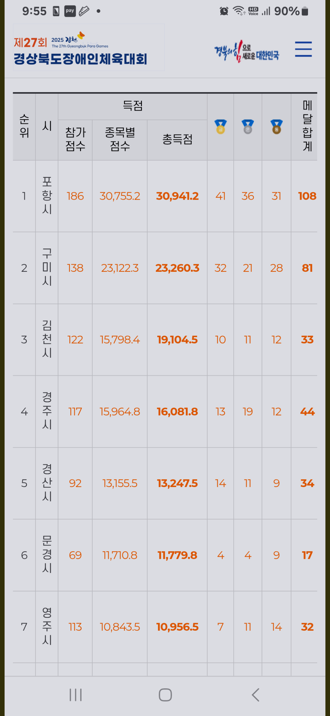 김천시에서 열린 경상북도장애인체육대회에서 팀포항시장애인체육회가 당당하게 우승트로피를 들고 왔습니다